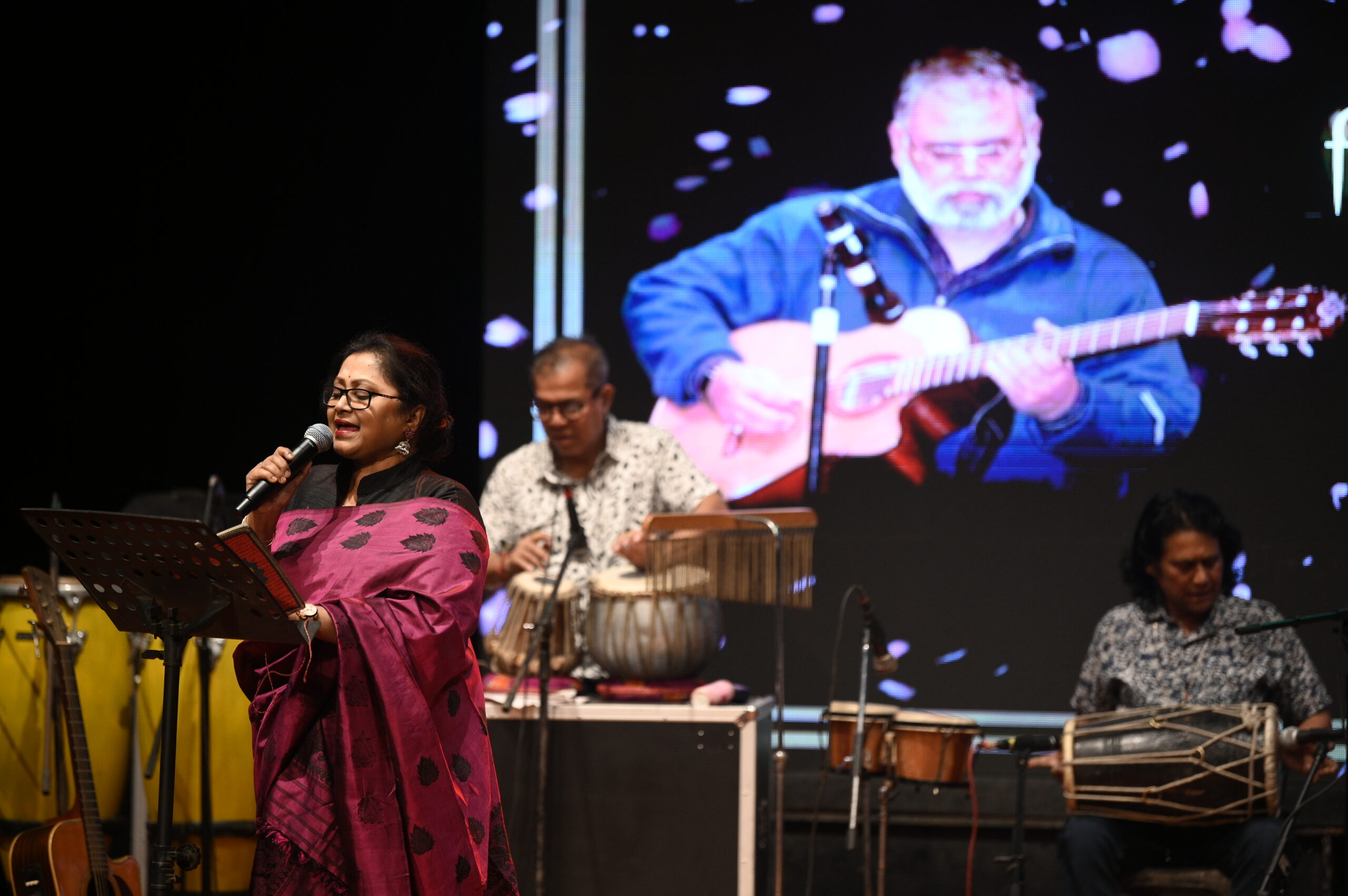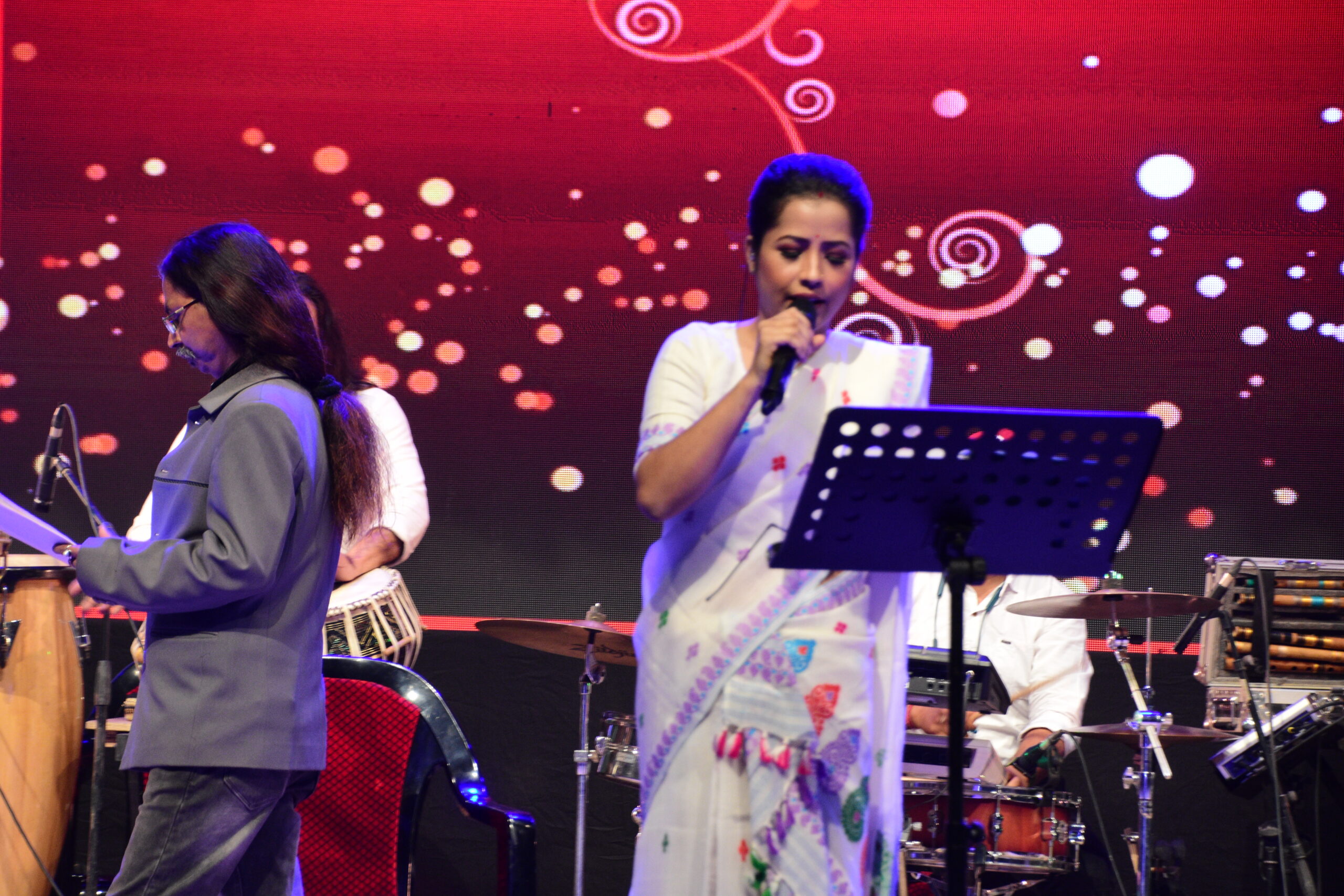The musical soiree featured captivating performances of Bhupen Uzir’s evergreen creations by noted vocalists including Shashwati Phukan, Queen Hazarika, Mausumi Saharia, Pranamika Goswami, Sarmistha Chakravorty, Sanskrita Malakar, Satyasandha Hazarika, Pritishmita Uzir Khanuja, Kirtika Uzir Sarma, Vidya Sagar, Chandan Das, Jeebendra Mohan Devsarma, Padmanav Bordoloi, Nilotpal Gayan, and Sharat Raag. Instrumental presentations by prominent musicians such as Jayanta Gogoi, Dr. Mrinal Das, Tapan Das, and Deep Rajbangshi further enriched the evening.