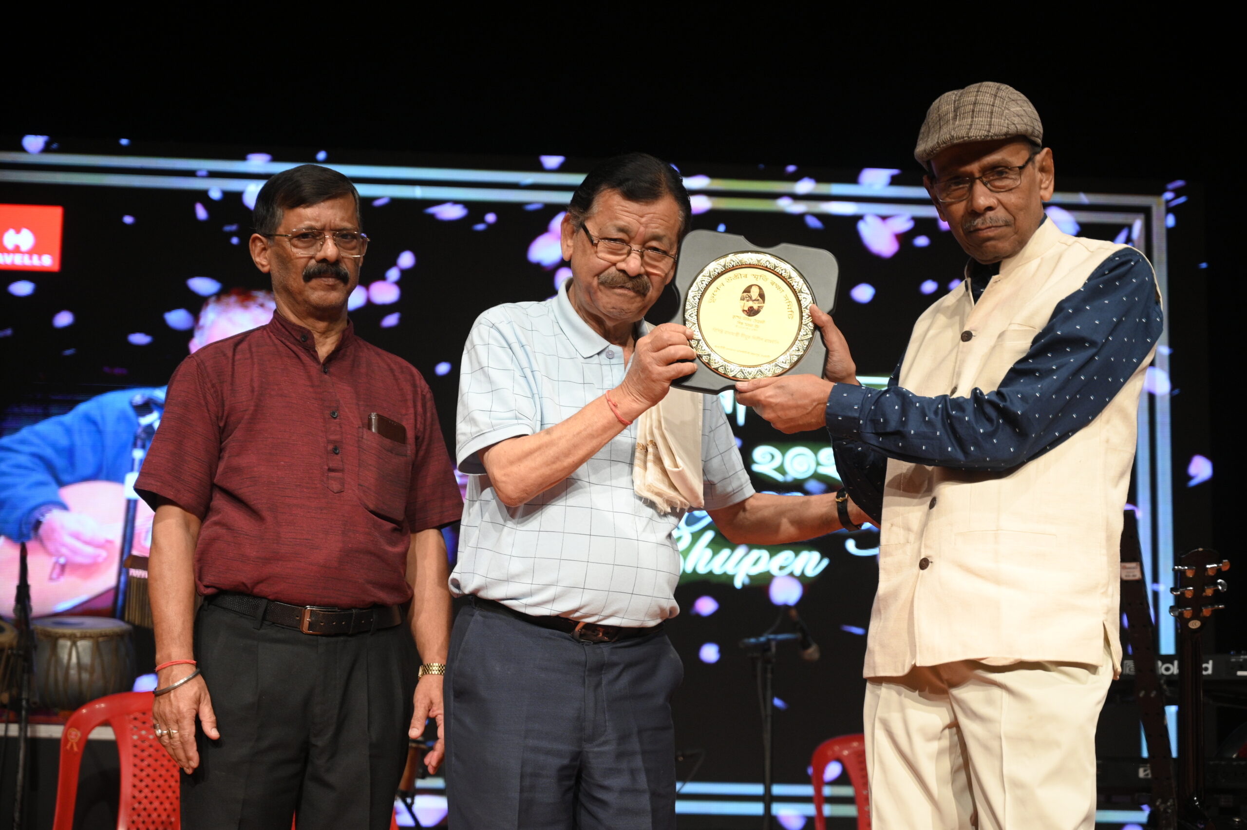 A major highlight of the evening was the conferment of the Bhupen Uzir Suwaroni Shilpi Sadhana Award upon four eminent artistes in recognition of their outstanding contributions to instrumental music and sound recording in Assam. The awardees were guitarist Sourabh Kumar Das, violinist and guitarist Dilip Rasaily, saxophonist Pitambar Tamuly, and recordist Satish Chauhan. The announcement and felicitation of winners from the online competition “Melodies of Bhupen Uzir,” featuring interpretations of his timeless compositions, also coincided with the birthday celebration.